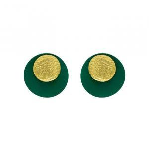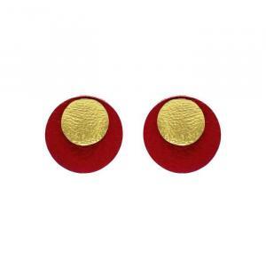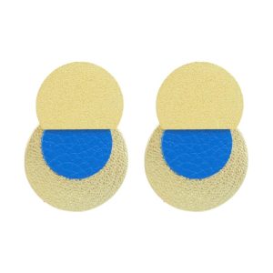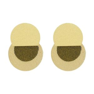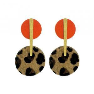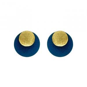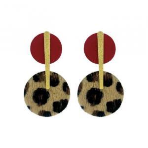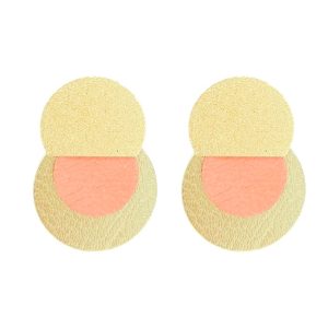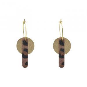 • Puces d'oreilles graphiques métal dorées et cuir couleurs.