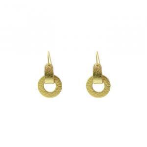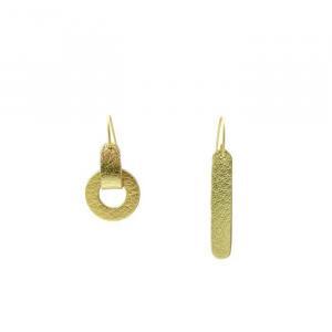 • Ces grandes boucles d’oreilles légères associent une attache en métal doré légèrement martelé à un grand rond en cuir