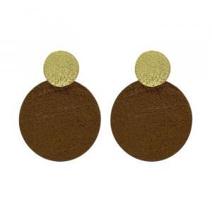 • Puces d'oreilles cercle métal doré et rond cuir.