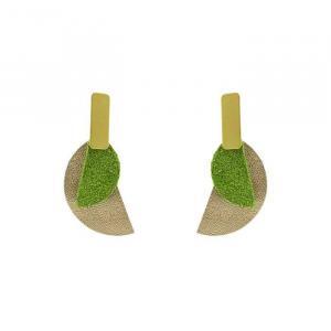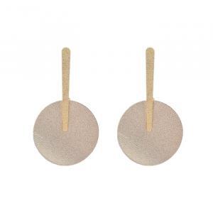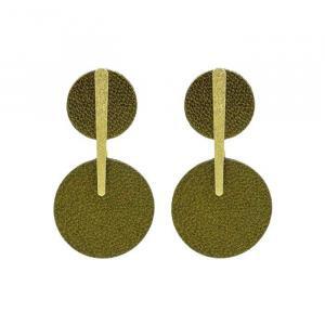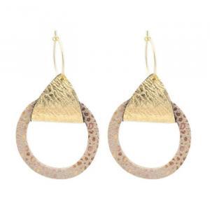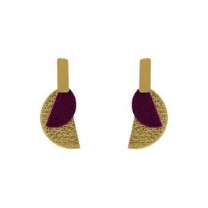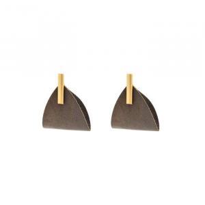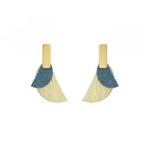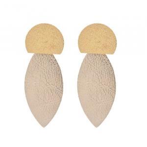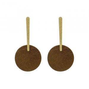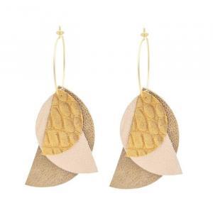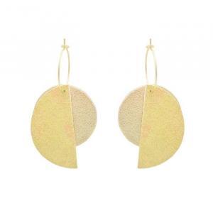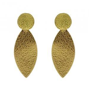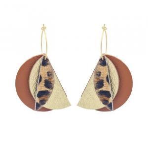 - Puces d'oreilles graphiques dorées et cuir.
