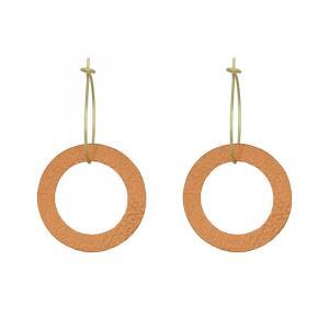 - Boucles d'oreilles pendantes forme ronde en cuir coloris doré. Nouvelles attaches