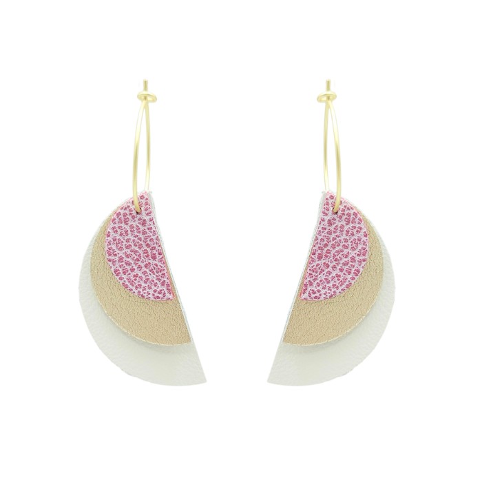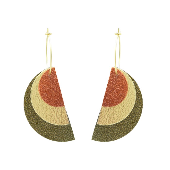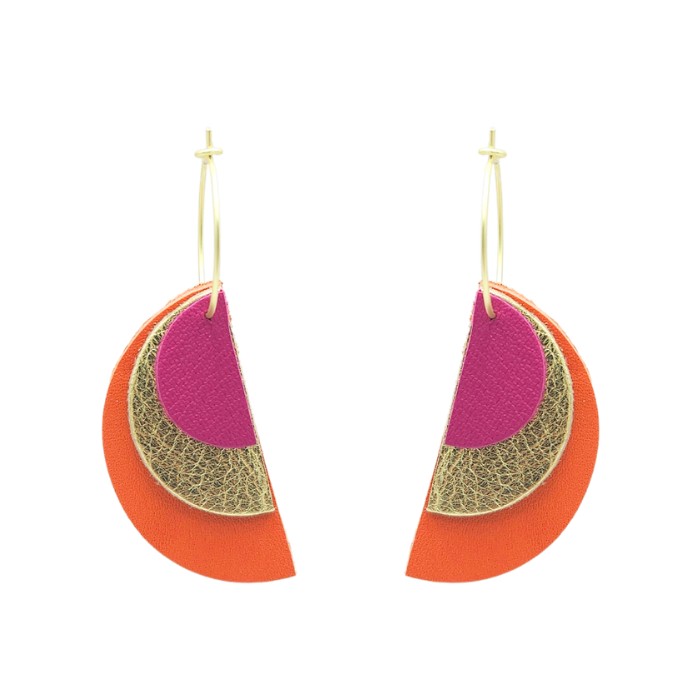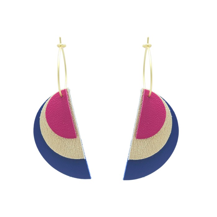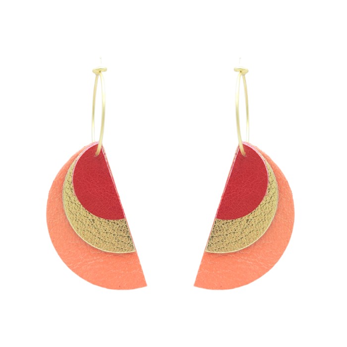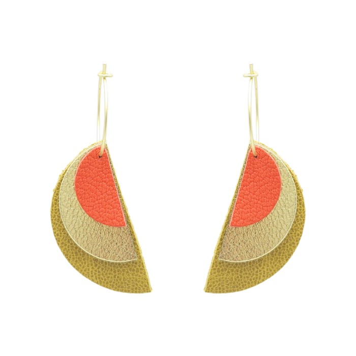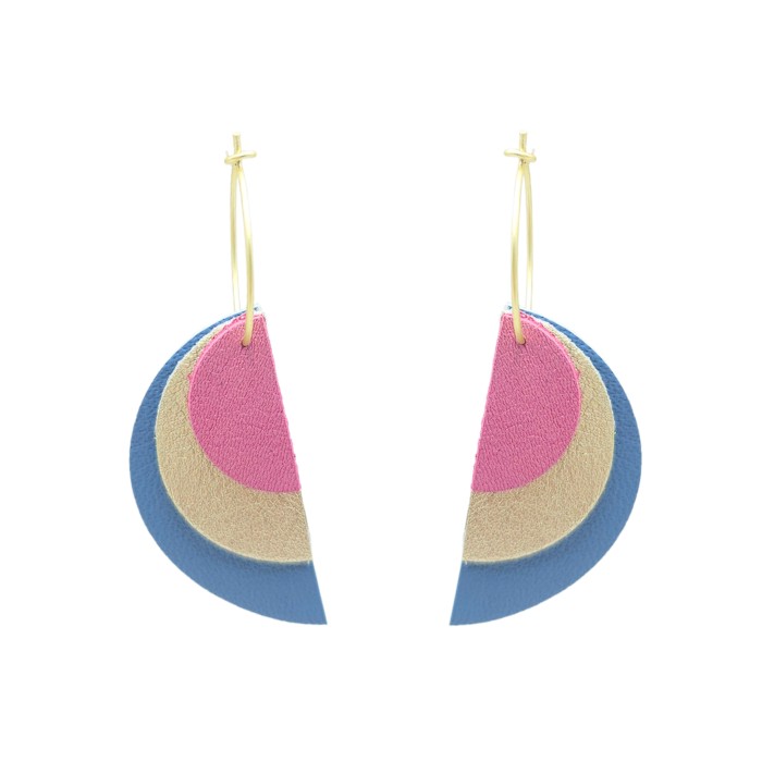 Chaque paire se compose de trois petits morceaux de cuir soigneusement sélectionnés. Leur agencement crée un équilibre visuel doux et harmonieux. Grâce à cette composition, les créoles Joséphine offrent une silhouette légère, mais aussi très élégante. Elles incarnent parfaitement l’esprit des Boucles d’oreilles colorées, à la fois créatives et faciles à porter.