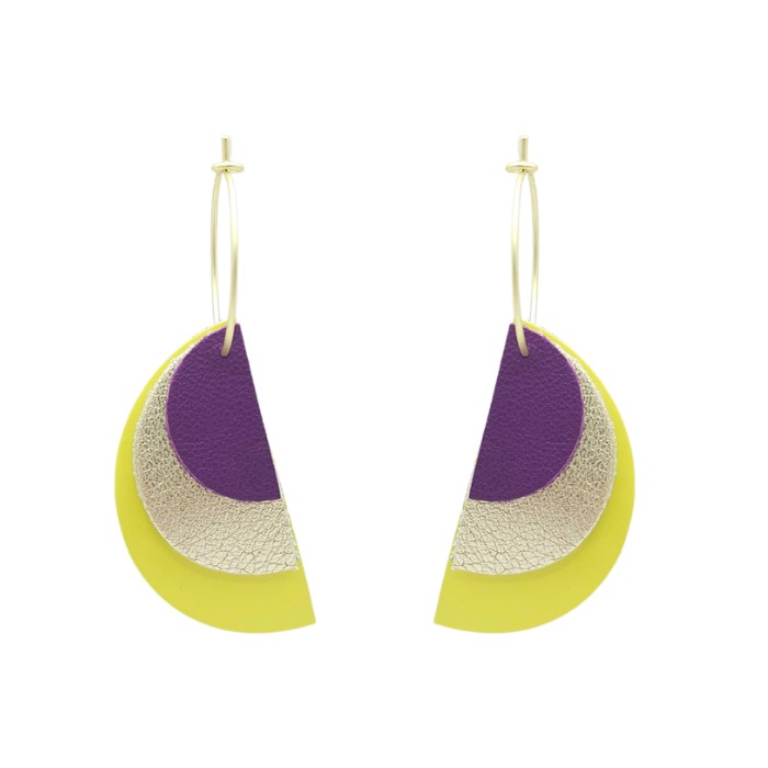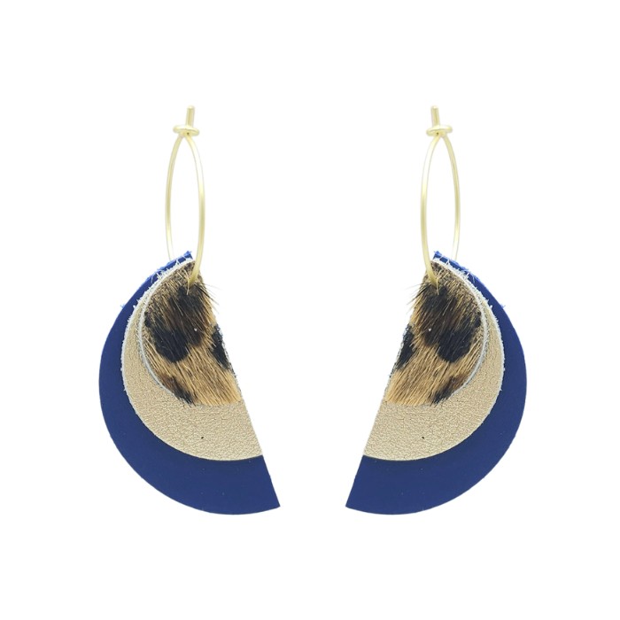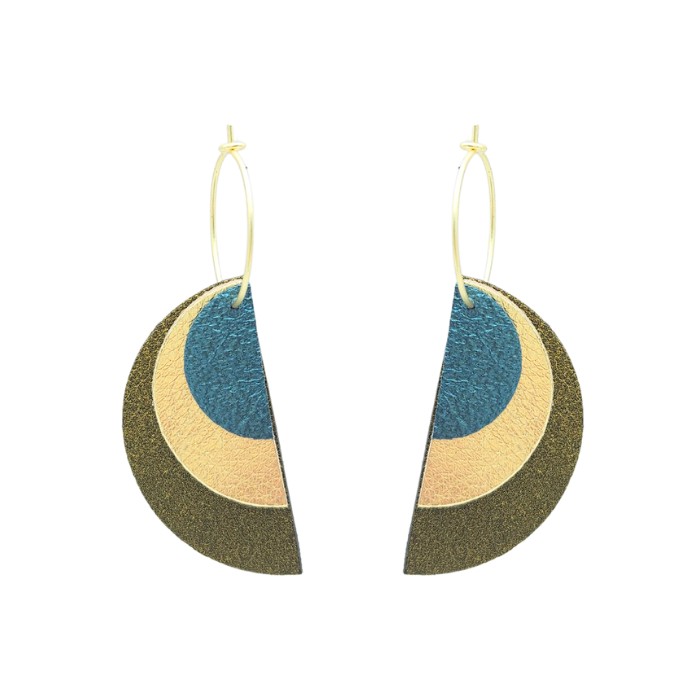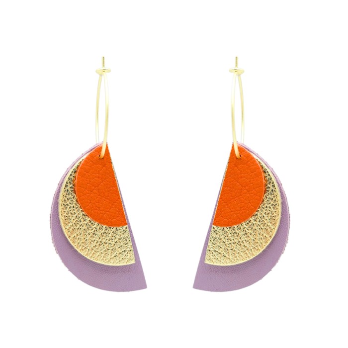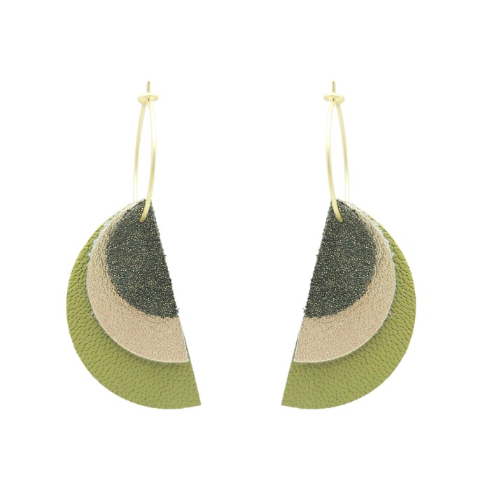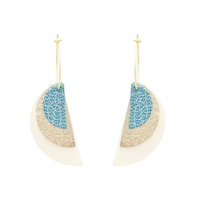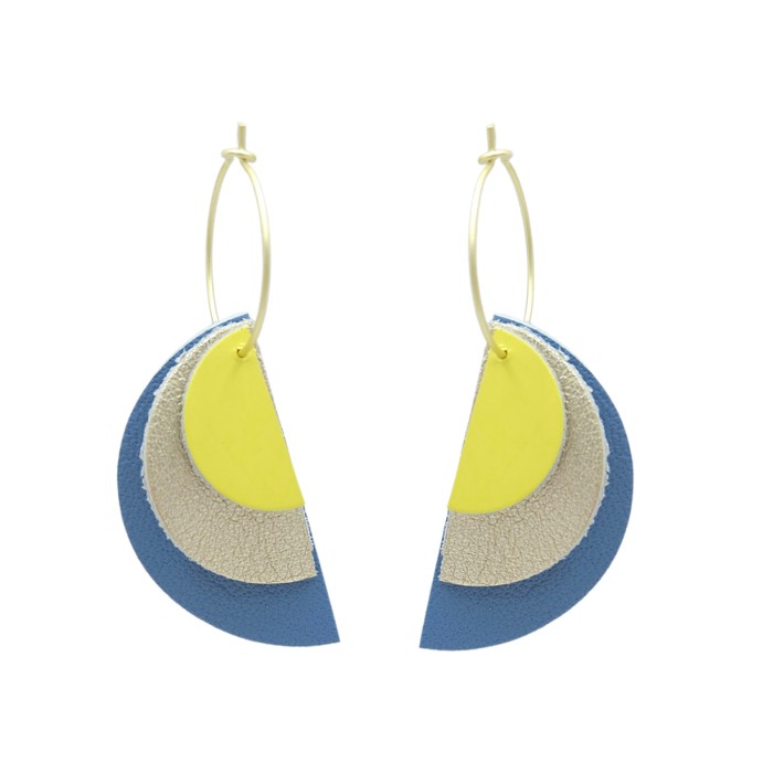 Chaque paire se compose de trois petits morceaux de cuir soigneusement sélectionnés. Leur agencement crée un équilibre visuel doux et harmonieux. Grâce à cette composition, les créoles Joséphine offrent une silhouette légère, mais aussi très élégante. Elles incarnent parfaitement l’esprit des Boucles d’oreilles colorées, à la fois créatives et faciles à porter.