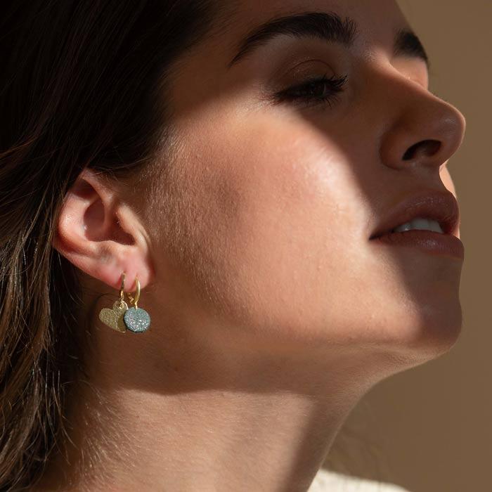 Des créoles dorées avec un petit cœur en cuir « upcyclé » soit doré soit paillettes couleurs. Discrètes et élégantes, elles se portent très facilement en toute circonstance. Peuvent se porter sur un 2éme trou aussi. Brillez et mettez des paillettes dans vos vies !