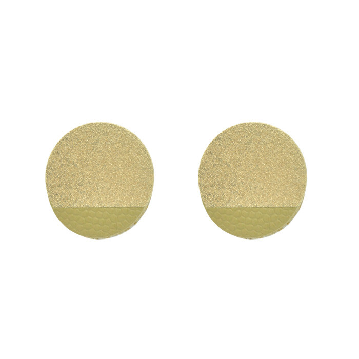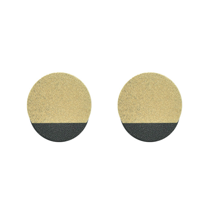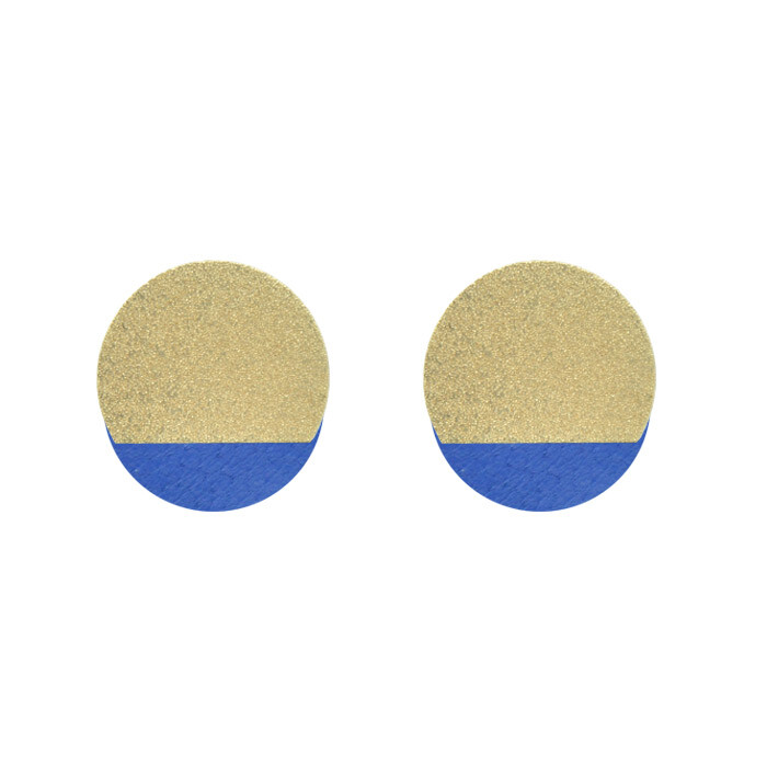 Puces d’oreilles graphiques métal dorées et cuir couleurs.