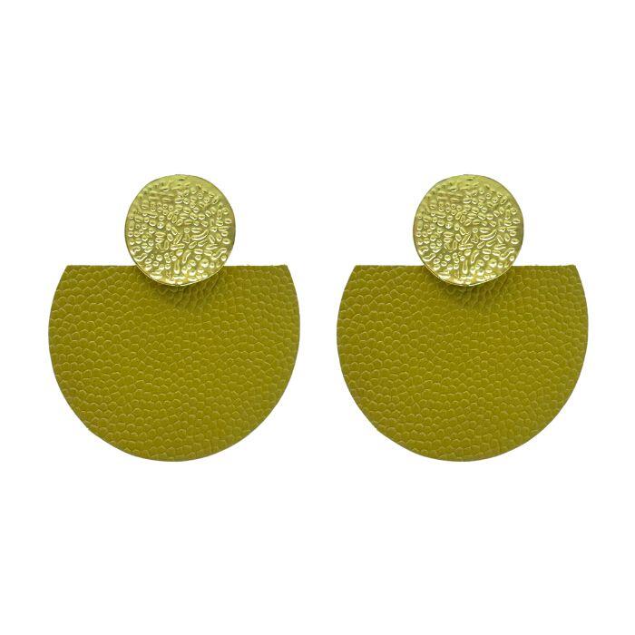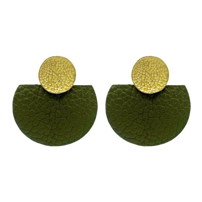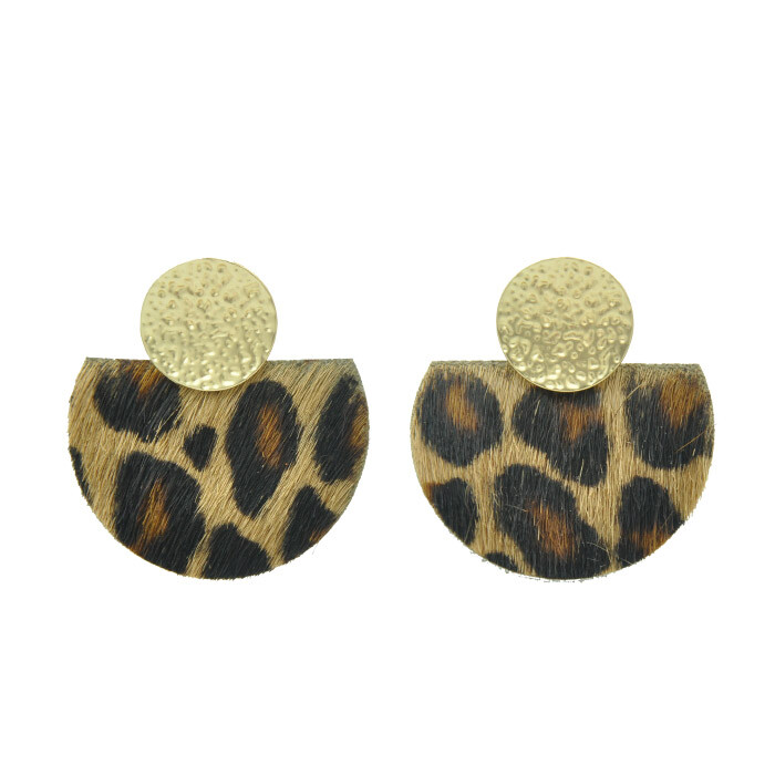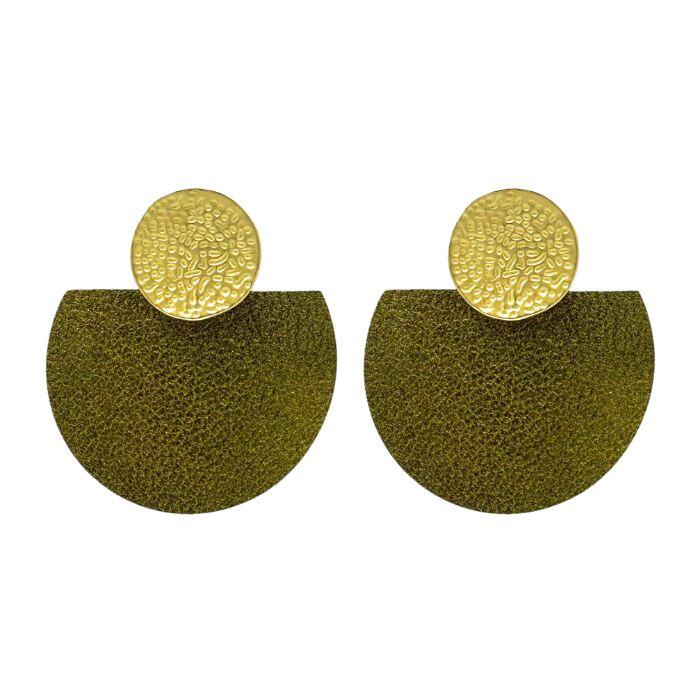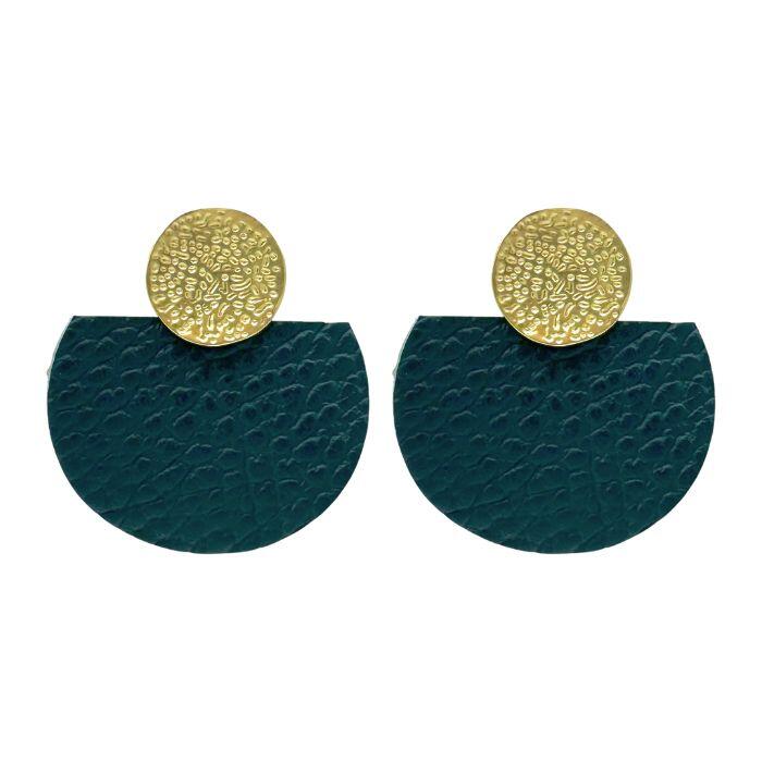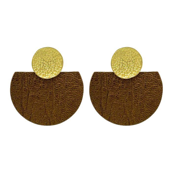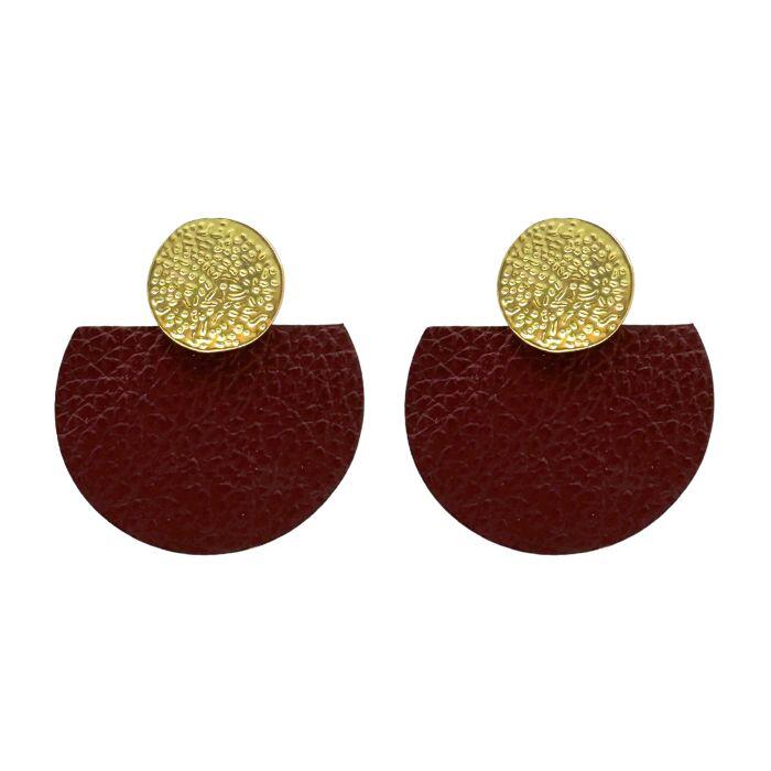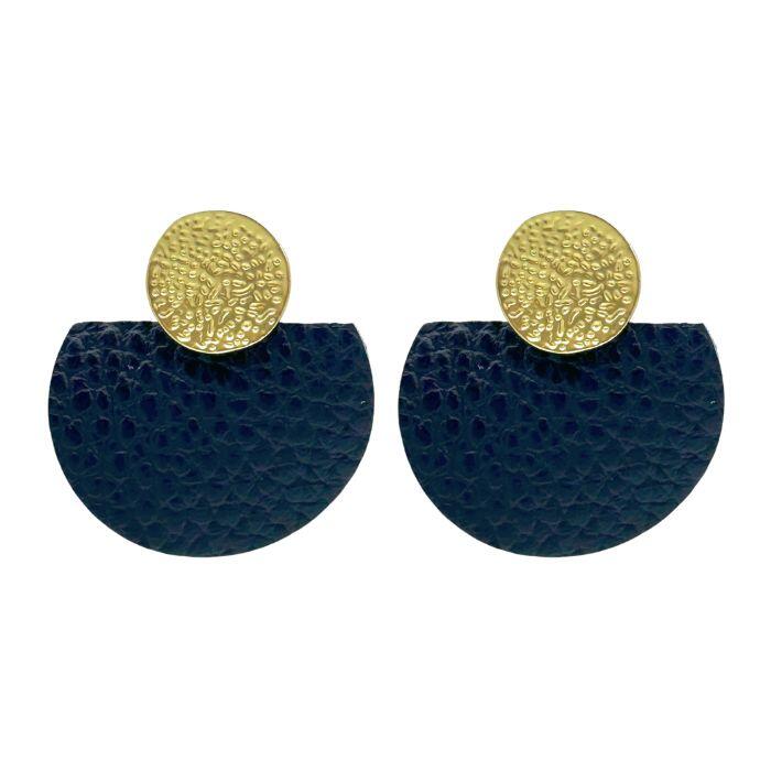 Puces d’oreilles rond métal doré et pièces en cuir. Disponible dans plusieurs coloris.